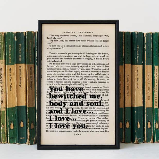 If your main squeeze is into reading, a literary-themed gift can be just the ticket. You can find framed pages of books overlaid with images/text for sale (the one in the image above is). But they’re also not hard to make yourself. Given the nature of the holiday, a page from one of her favorite romantic-themed novels (paging Jane Austen), overlaid with a romantic image or quote, is of course apropos.