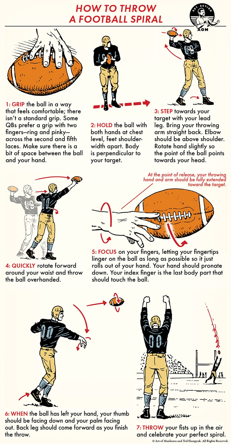 Thanksgiving is this week. For many men in America, Thanksgiving Day not only means eating turkey and stuffing but also playing a pick-up game of football in the morning with friends and family. To help you quarterback your team to a Turkey Bowl victory, follow the above tips for throwing the ball with a sweet spiral.