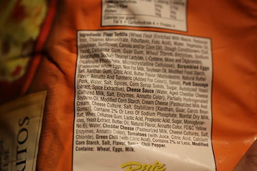 What’s more, with the fast food and store-bought breakfast burritos, you’re getting a lot more additives and preservatives. Just take a look at the list of ingredients for El Monterey breakfast burritos: