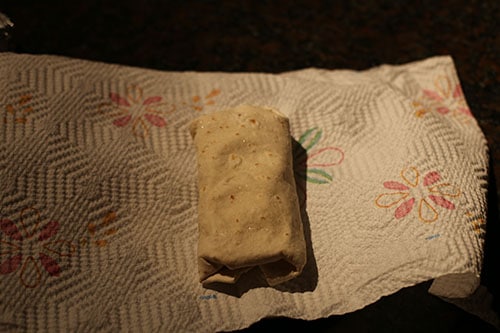 I used my experience from years of watching Chipotle workers wrap giant burritos as a guide to my wrapping technique.