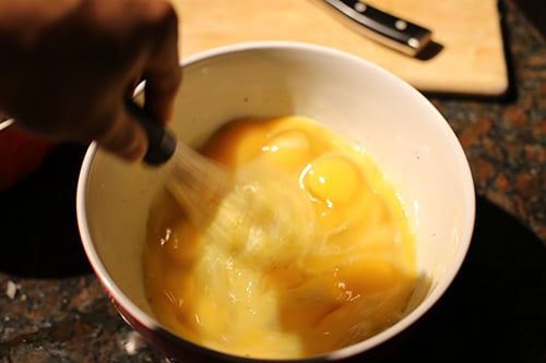 28 ounces is a lot of sausage to cook, so it’s going to take some time. You can start getting the eggs ready while you’re waiting for it to cook. Then page through a copy of Manvotionals to feed your spirit in preparation for feeding your belly.